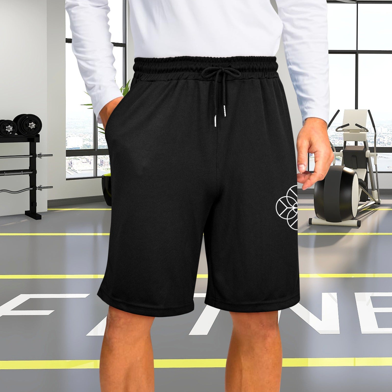 - Features an elastic waistband with a drawcord for a secure fit, and two side pockets perfect for holding small items like a Bluetooth device or phone.